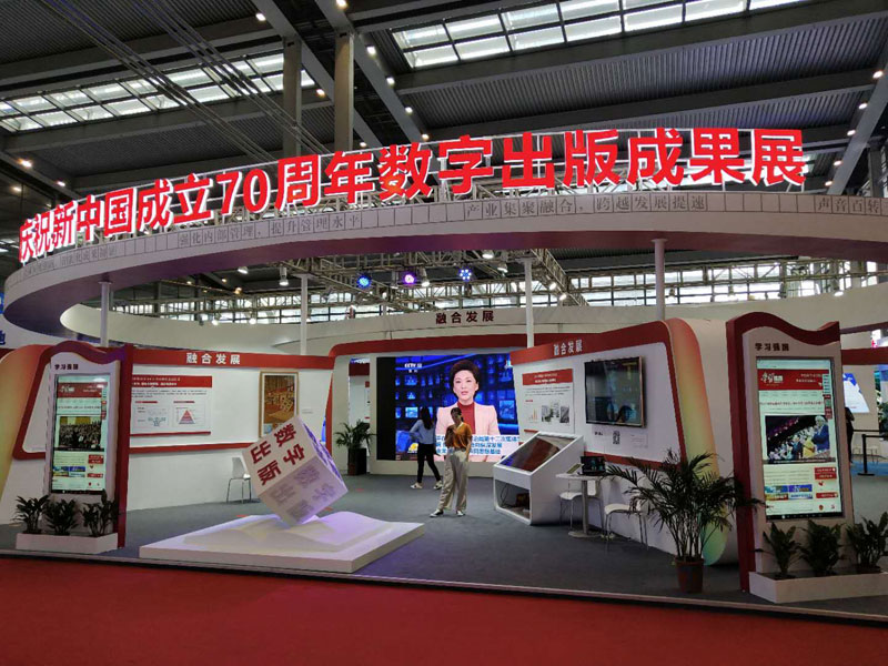 盛典博覽公司有幸參與了慶祝新中國成立70周年數(shù)字出版成果展展區(qū)的設(shè)計及搭建。我們根據(jù)中國新聞出版研究院產(chǎn)業(yè)發(fā)展咨詢中心提出的設(shè)計要求對整體展區(qū)進(jìn)行詳細(xì)規(guī)劃與設(shè)計,得到了與會人員的全力認(rèn)可。