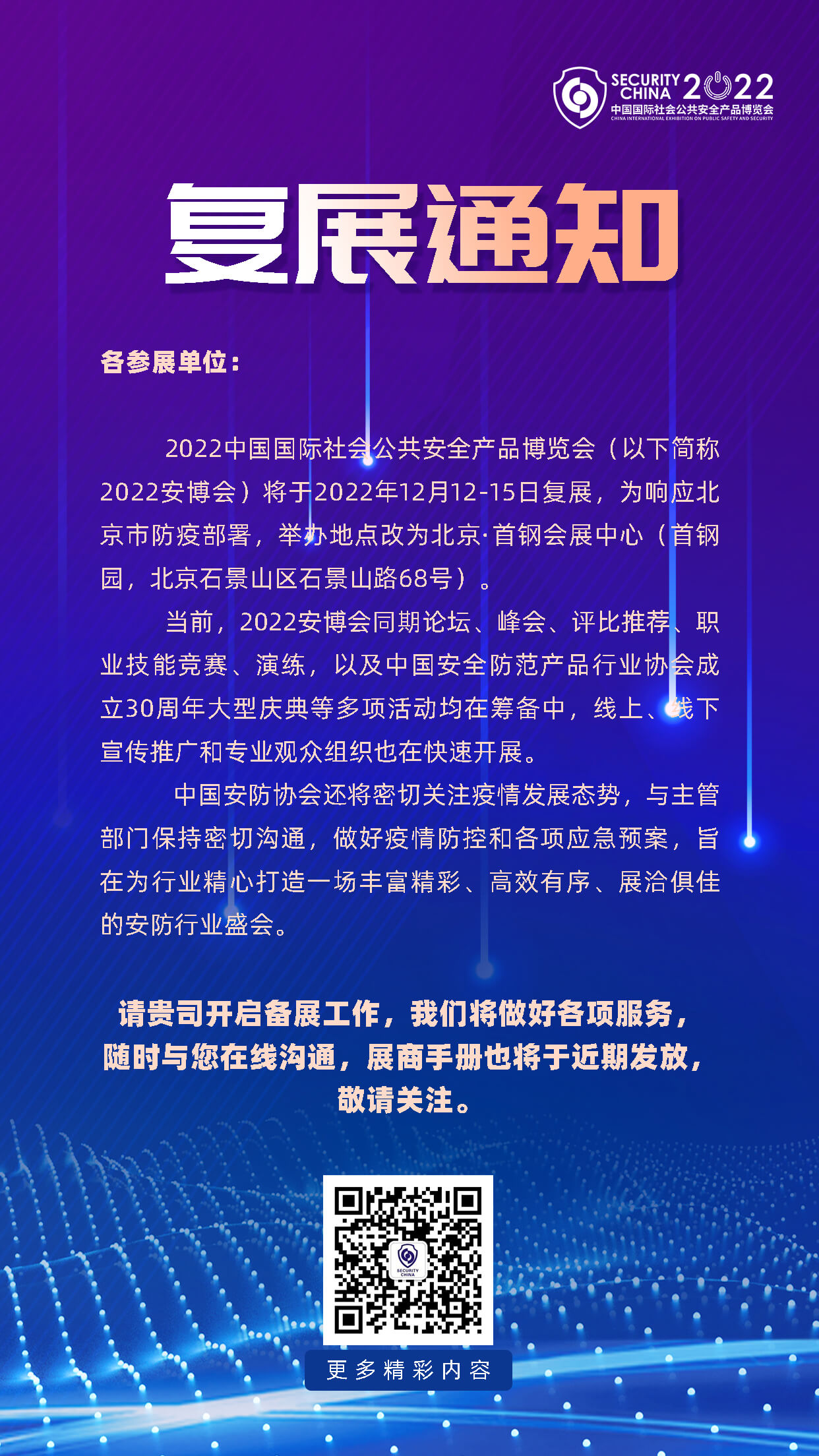 2022中國國際社會(huì)公共安全產(chǎn)品博覽會(huì)復(fù)展說明
