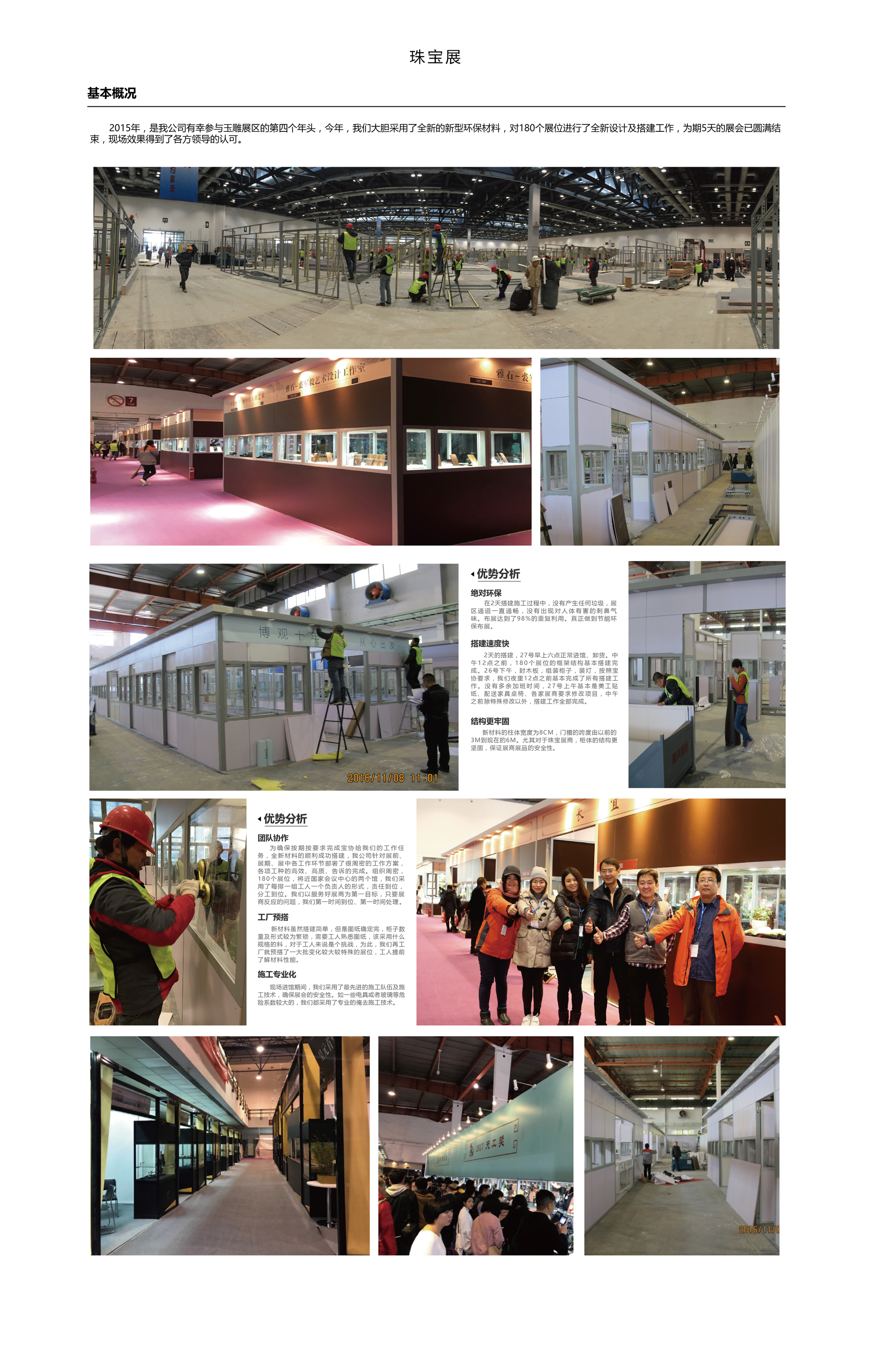 2015年,是我公司有幸參與玉雕展區(qū)的第四個(gè)年頭,今年,我們大膽采用了全新的新型環(huán)保材料,對180個(gè)展位進(jìn)行了全新設(shè)計(jì)及搭建工作,為期5天的展會已圓滿結(jié)束,現(xiàn)場效果得到了各方領(lǐng)導(dǎo)的認(rèn)可。