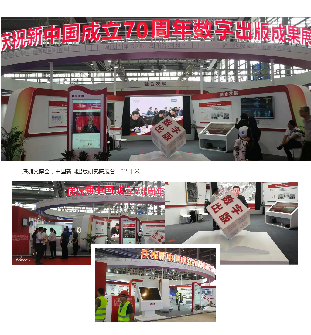 2019年5月16日至20日,第十五屆中國(深圳)國際文化產(chǎn)業(yè)博覽交易會將在深圳舉辦,盛典公司負(fù)責(zé)中國新聞出版研究院展臺的設(shè)計與搭建,總面積315平米,得到了甲方的認(rèn)可和肯定。