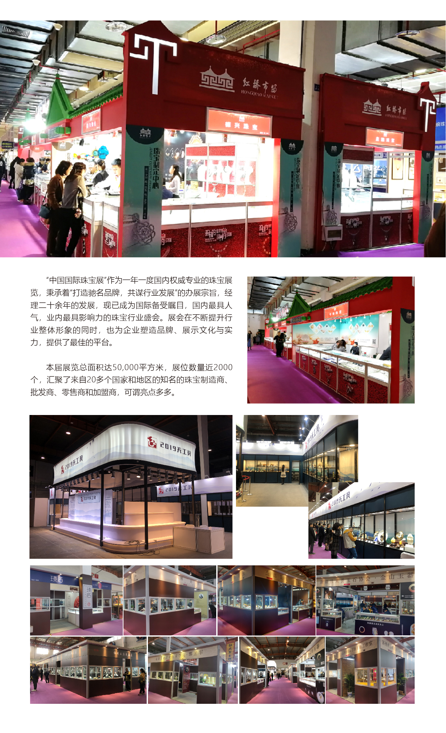由中國(guó)珠寶首飾行業(yè)協(xié)會(huì)、國(guó)土資源部珠寶玉石首飾管理中心等單位組織,2019中國(guó)國(guó)際珠寶首飾展覽會(huì)將于2019年11月14-18日在北京中國(guó)國(guó)際展覽中心(老館)舉行。本屆珠寶展著力為珠寶生產(chǎn)、經(jīng)銷商及協(xié)會(huì)、媒體等社會(huì)大眾搭建交流交易平臺(tái),力邀美國(guó)、韓國(guó)、中國(guó)臺(tái)灣、香港、斯里蘭卡等國(guó)內(nèi)外珠寶首飾優(yōu)秀企業(yè),展示最新珠寶首飾及行業(yè)趨勢(shì)新品發(fā)布,提升珠寶品牌傳播,展會(huì)同期將舉辦國(guó)際專家講座、靚模演繹奢華、現(xiàn)場(chǎng)拍賣會(huì)等眾多精彩紛呈的活動(dòng)。盛典博覽公司負(fù)責(zé)紅橋市場(chǎng)展區(qū)的整體設(shè)計(jì)與搭建,得到了展商的認(rèn)可和肯定。